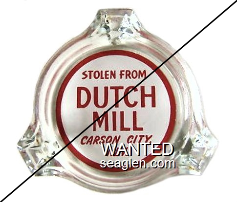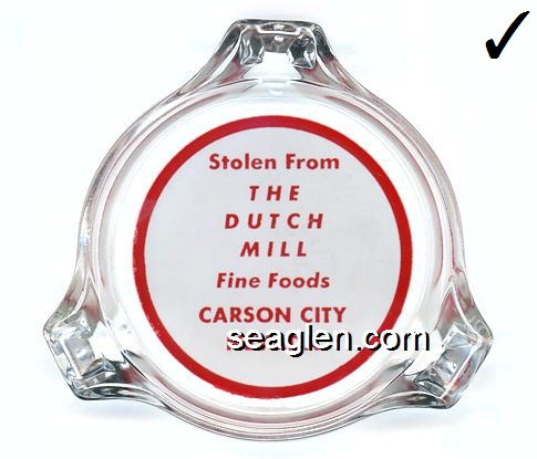 DUT-A2 Dutch Mill Carson City, NV 3 1/4" Clear Glass Ashtray Red on white imprint: Stolen From, Dutch Mill, Carson City, Nev. |
