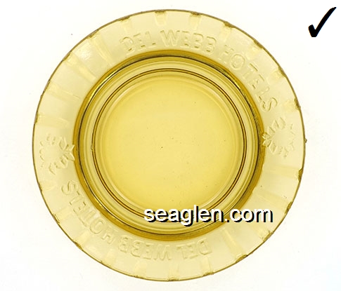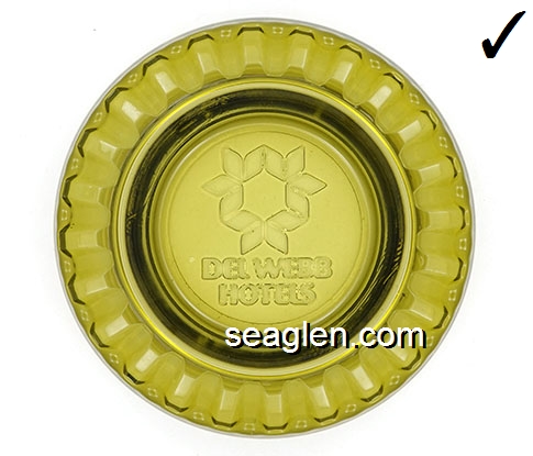 DWH-B1 Del Webb Hotels Las Vegas, NV 4" Green Glass Ashtray Molded imprint: Del Webb Hotels (Like DWH-01, except green glass) |
