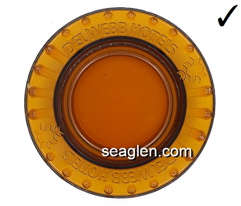 DWH-A1 Del Webb Hotels Las Vegas, NV 4 1/2" Amber Glass Ashtray Orange imprint: Del Webb Hotels |