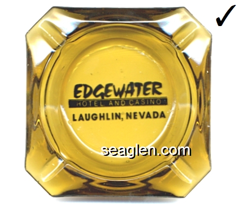 EDG-02 Edgewater Hotel & Casino Laughlin, NV 3 5/8" Amber Glass Ashtray Black imprint: Edgewater, Hotel and Casino, Laughlin, Nevada |