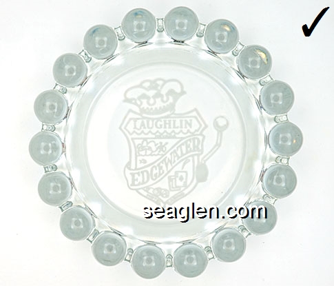 EDG-04 Edgewater Hotel & Casino Laughlin, NV 4 1/2" Clear Glass Ashtray Molded imprint: Edgewater, Hotel - Casino, Laughlin, Nevada (800) 67-RIVER 74837 |