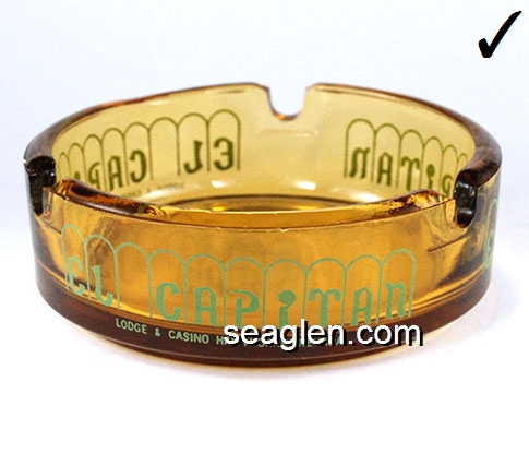 ELC-15 El Capitan Lodge & Casino Hawthorne, NV 3 1/2" Amber Glass Ashtray Green imprint: El Capitan Lodge & Casino, Hawthorne, Nevada |