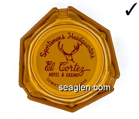 ELC-45 El Cortez Hotel & Casino Las Vegas, NV 3 1/2" Amber Glass Ashtray Red on white imprint: Sportsmen's Headquarters, El Cortez Hotel & Casino, Downtown Las Vegas |