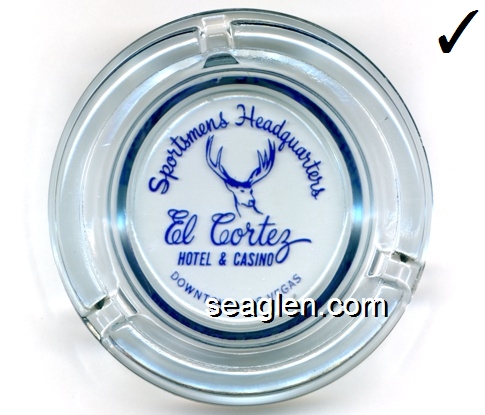 ELC-43 El Cortez Hotel & Casino Las Vegas, NV 3 1/2" Blue Glass Ashtray Red on white imprint: Sportsmen's Headquarters, El Cortez Hotel & Casino, Downtown Las Vegas |