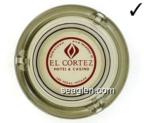 ELC-44 El Cortez Hotel & Casino Las Vegas, NV 3 1/2" Smoke Glass Ashtray Red on white imprint: Sportsmen's Headquarters, El Cortez Hotel & Casino, Downtown Las Vegas |