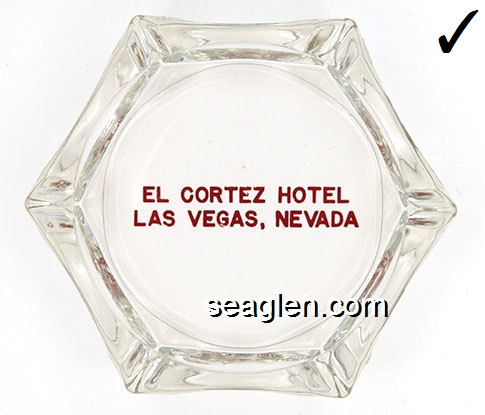 ELC-U1 El Cortez Hotel & Casino Las Vegas, NV 4" Clear Glass Ashtray Red imprint: El Cortez Hotel. Las Vegas, Nevada |