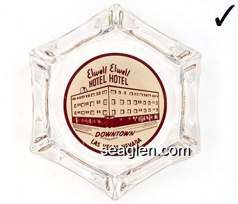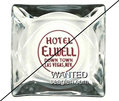 ELW-D1 Elwell Hotel Las Vegas, NV 4 1/2" Clear Glass Ashtray Red on white imprint: Elwell Hotel, Downtown Las Vegas, Nevada |