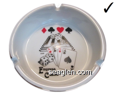EMP-A1 Empress River Casino Joliet, IL 3 1/2" White Porcelain Ashtray Black and red imprint: Empress Casino |