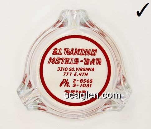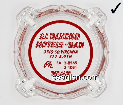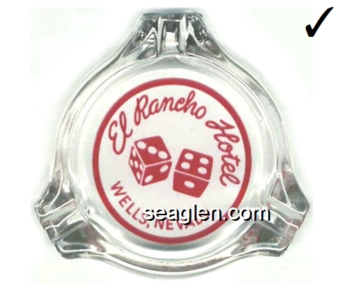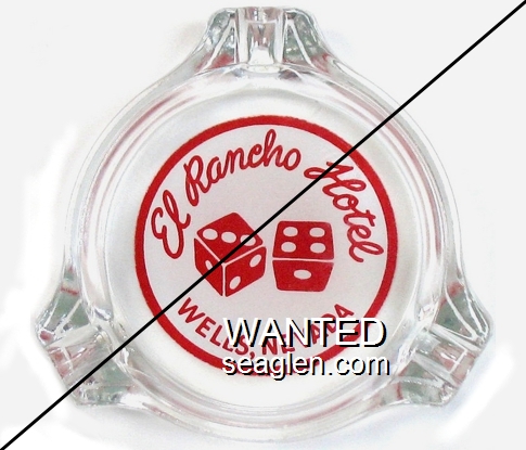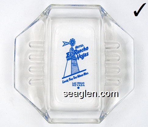 ERV-A1 El Rancho Vegas Las Vegas, NV 5" Clear Glass Ashtray Red and blue on white imprint: Hotel El Rancho Vegas, Look For The Wind Mill, Las Vegas Nevada (SAFEX moulded underside) |