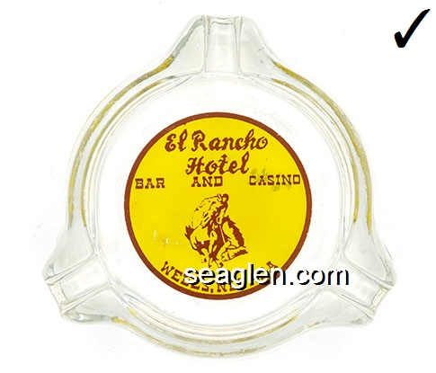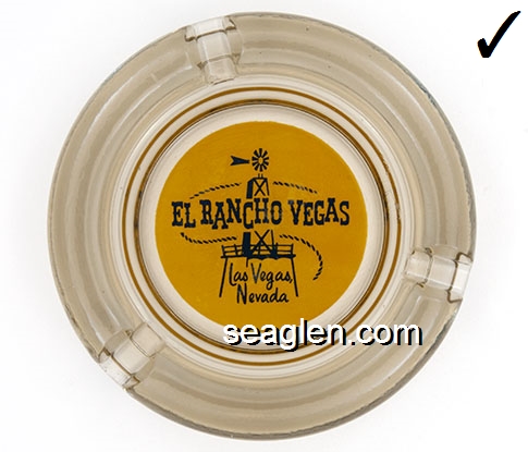 ERV-02 El Rancho Vegas Las Vegas, NV 5" Clear Glass Ashtray Blue on yellow imprint: Hotel El Rancho Vegas, Look For The Wind Mill, Las Vegas, Nevada (SAFEX moulded underside) |