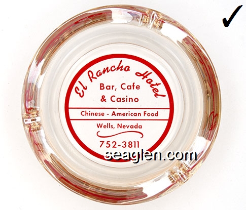 ELC-03 El Capitan Lodge & Casino Hawthorne, NV 3 7/16" Clear Glass Ashtray Red on green imprint: El Capitan Restaurant, Restaurant El Capitan, Hawthorne, Nevada |