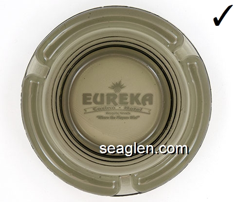 EUC-B1 Eureka Casino-Hotel Mesquite, NV 3 9/16" Smoke Glass Ashtray White imprint: eureka, casino . hotel . mesquite - nevada . , '''where the players win!'' |