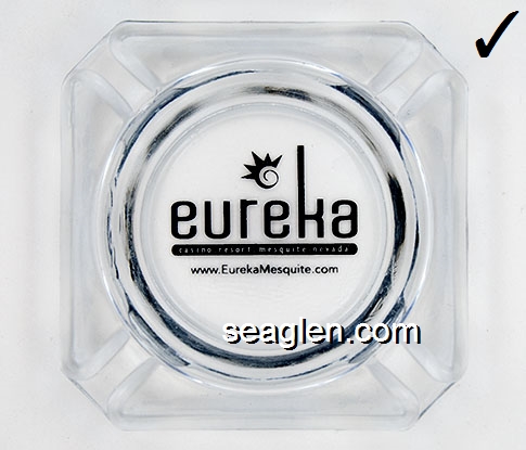 EUC-A1 Eureka Casino-Hotel Mesquite, NV 4 1/2" Smoke Glass Ashtray White imprint: Eureka Casino - Hotel, Mesquite, Nevada, ''Where the Players Win!'' (4 sniffers) |