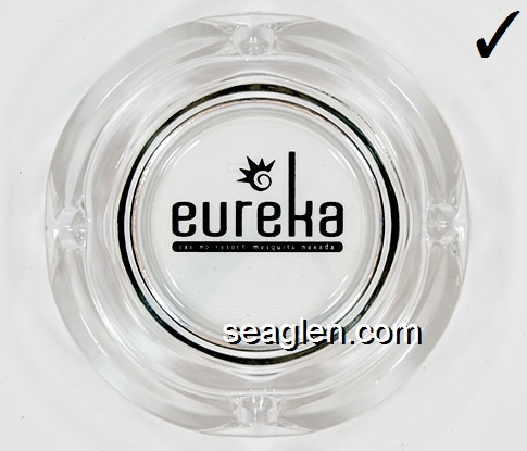 EUC-D1 Eureka Casino-Hotel Mesquite, NV 3 1/2" Clear Glass Ashtray Black imprint: eureka, casino . resort . mesquite - nevada . , www.EurekaMesquite.com |