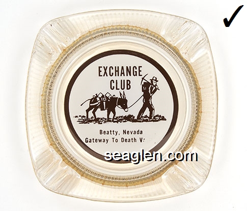 EXC-C1 Exchange Club Beatty, NV 4 1/4" Clear Glass Ashtray Red and white imprint: Exchange Club and Famous Amargosa Restaurant, Saloon - Gambling ... The Corner, Nevada's Gateway to Death Valley, Beatty, Nevada |
