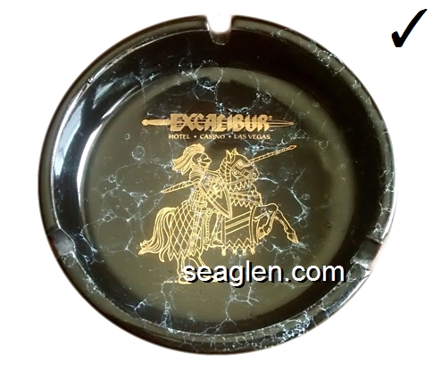 EXC-N2 Excalibur Las Vegas, NV 4 1/2" Black Porcelain Ashtray Gold imprint: Excalibur, Hotel - Casino - Las Vegas |