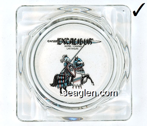 EXC-P2 Excalibur Las Vegas, NV 4 1/2" Clear Glass Ashtray Gold, red and black imprint: Excalibur, Hotel / Casino, Las Vegas |