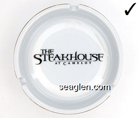 EXC-Q1 Excalibur Las Vegas, NV 4" White Porcelain Ashtray Black imprint: The Steakhouse at Camelot |