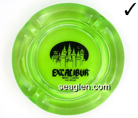 EXC-R1 Excalibur Las Vegas, NV 4 5/8" Green Glass Ashtray Black imprint: Excalibur, Hotel / Casino, Las Vegas |