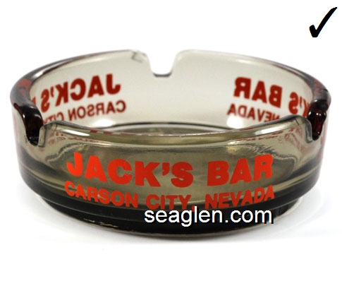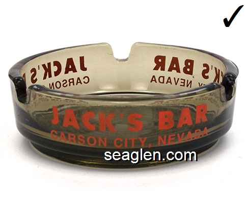 JCK-B3 Jack's Bar Carson City, NV 3 1/2" Smoke Glass Ashtray Orange imprint: Jack's Bar, Carson City, Nevada |