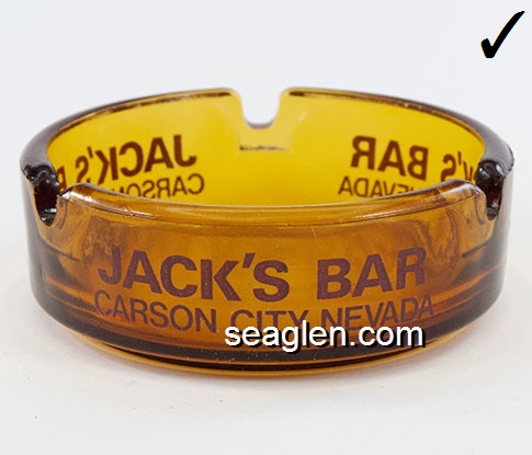 JCK-B4 Jack's Bar Carson City, NV 3 1/2" Amber Glass Ashtray Purple imprint: Jack's Bar, Carson City, Nevada |