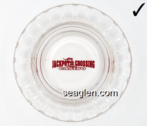 JKP-A1 Jackpot Crossing Casino Carson City, NV 4 1/2" Clear Glass Ashtray Red imprint: Jackpot Crossing Casino |