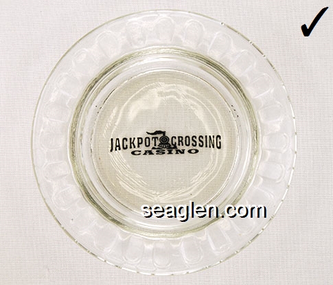 JKP-A2 Jackpot Crossing Casino Carson City, NV 4 1/2" Clear Glass Ashtray Black imprint: Jackpot Crossing Casino |