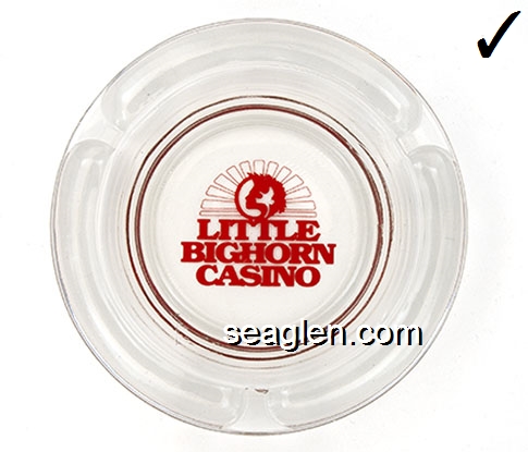 LBH-A1 Little Bighorn Casino Crow Agency, MT 4 1/2" Clear Glass Ashtray Red imprint: Little Bighorn Casino |