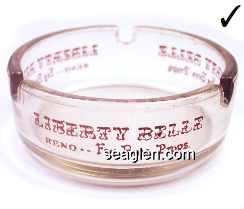LBS-01 Liberty Belle Saloon Reno, NV 3 1/2" Clear Glass Ashtray Brown imprint: Liberty Belle, Reno - Fey Bros Props |