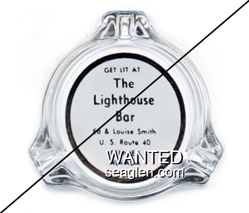 LHF-B2 Light House Bar Fernley, NV 3 1/2" Clear Glass Ashtray Red on white imprint: Get Lit At The Lighthouse Bar, Ed & Louise Smith, U. S. Route 40, Fernley, Nevada |