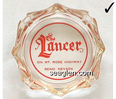 LNC-C1 Lancer Reno, NV 4" Clear Glass Ashtray Red imprint: The Lancer, On Mt. Rose Highway, Reno, Nevada |