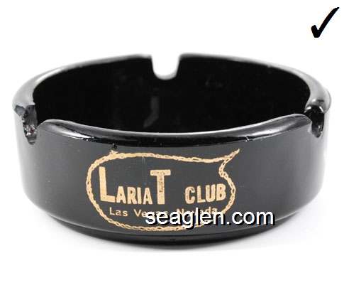 LRT-A1 Lariat Club Las Vegas, NV 3 1/2" Amethyst Glass Ashtray Gold imprint: LariaT Club, Las Vegas, Nevada, El Jungle Mexican Restaurant, Jungle Club Bar |