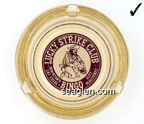 LSC-13 Lucky Strike Club Las Vegas, NV 4 3/16" Amber Glass Ashtray Purple on white imprint: Lucky Strike Club, Downtown Las Vegas, Bingo, Slot Machines |