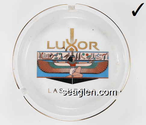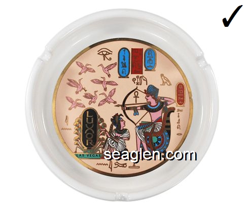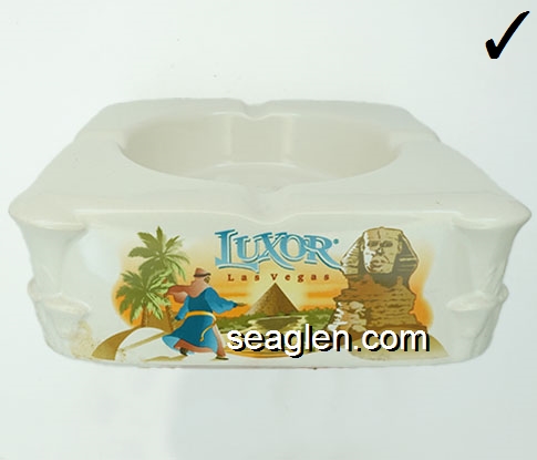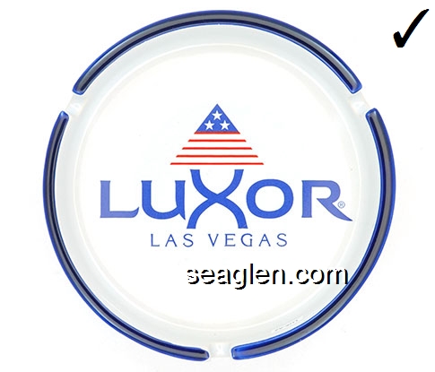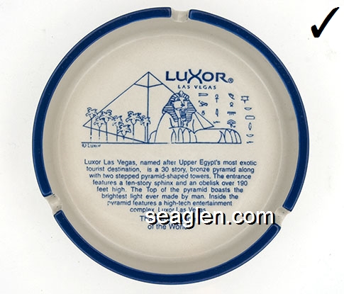LUX-B1 Luxor Las Vegas, NV 4 7/8" White Porcelain Ashtray Blue imprint: Luxor Las Vegas, named after Upper Egypt's most exotic tourist ... complex Luxor Las Vegas, The Next Wonder of the World. |