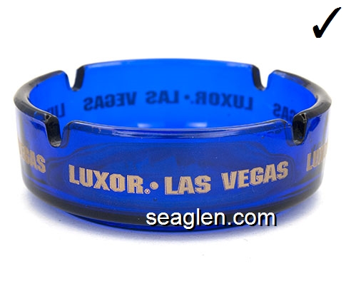 LUX-C1 Luxor Las Vegas, NV 4 1/8" Blue Glass Ashtray Gold imprint: Luxor - Las Vegas, Made in China |