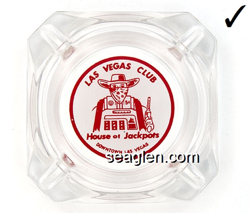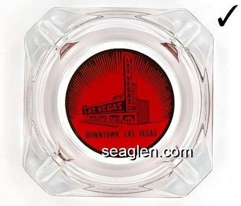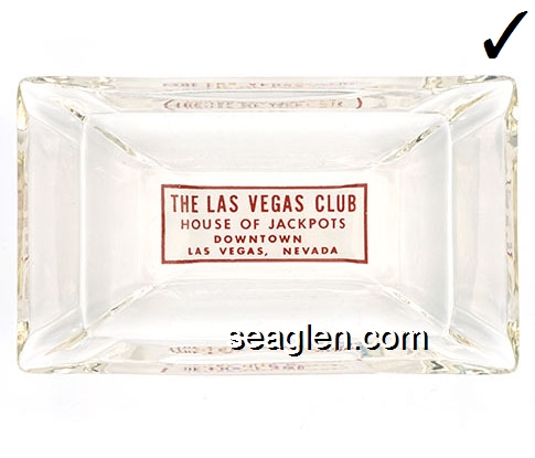 LVC-01 Las Vegas Club Las Vegas, NV 3 x 5" Clear Glass Ashtray Red on white imprint: The Las Vegas Club, House of Jackpots, Downtown Las Vegas, Nevada |