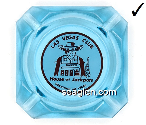 LVC-A2 Las Vegas Club Las Vegas, NV 3 1/2" Blue Glass Ashtray Red on white imprint: Las Vegas Club, House of Jackpots, Downtown Las Vegas |