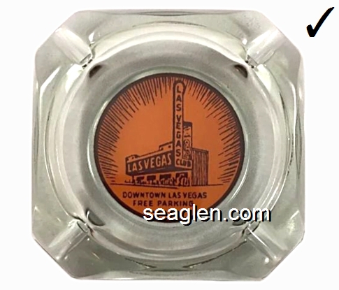 LVC-05 Las Vegas Club Las Vegas, NV 3 1/2" Smoke Glass Ashtray Brown on orange imprint: Downtown Las Vegas, Free Parking |