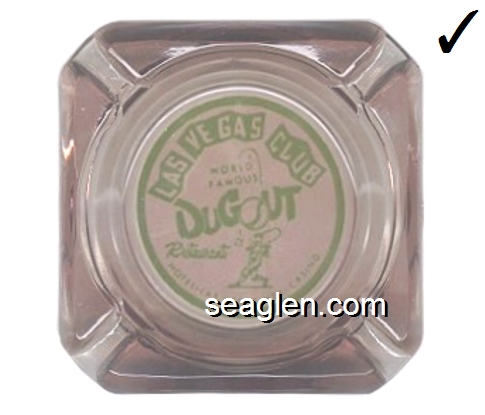 LVC-C1 Las Vegas Club Las Vegas, NV 3 1/2" Smoke Glass Ashtray Green on white imprint: Las Vegas Club, World Famous Dugout Restaurant, Hotel - Las Vegas - Nev. - Casino |