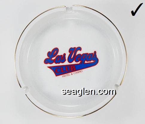 LVC-G1 Las Vegas Club Las Vegas, NV 4 1/2" White Porcelain Ashtray Red and blue imprint: Las Vegas Club, Hotel ^ Casino |