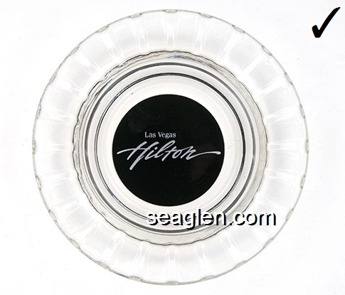 LVH-D1 Las Vegas Hilton Las Vegas, NV 4 1/2" Clear Glass Ashtray White on black imprint: Las Vegas Hilton |
