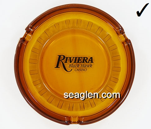 RBH-C1 Riviera, Black Hawk Black Hawk, CO 4 3/8" Amber Glass Ashtray Black imprint: Riviera Black Hawk Casino |