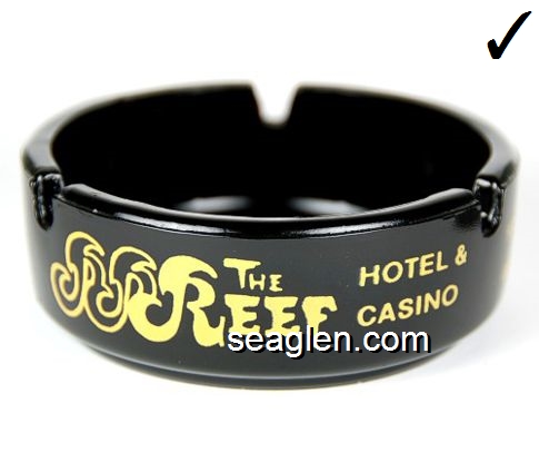 REF-A1 Reef Hotel & Casino Reno, NV 3 1/2" Amethyst Glass Ashtray Gold imprint: The Reef, Hotel & Casino, 567 W. 4th ST. - Reno, Nevada, (800) 648-4700 - (702) 786-1331 |