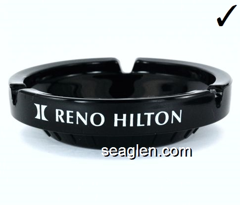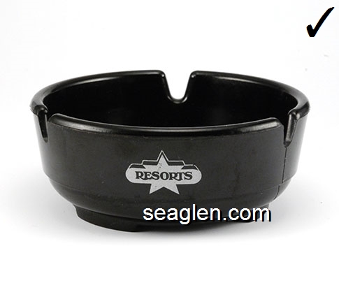 RAE-B1 Ramada Express Laughlin, NV 4" Black Plastic Ashtray White imprint: Ramada Express, Hotel & Casino |