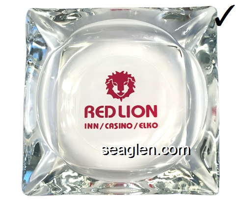 REL-E1 Red Lion Inn & Casino Elko, NV 3 1/2" Clear Glass Ashtray Red imprint: Red Lion, Inn / Casino / Elko |