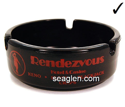 REN-01 Rendezvous Hotel & Casino Las Vegas, NV 3 1/2" Amethyst Glass Ashtray Red imprint: Rendezvous Hotel & Casino, Keno - Slots - Blackjack - Craps, ... Ogden Ave. (Downtown Strip), Las Vegas, Nevada, (702) 386-0788 |