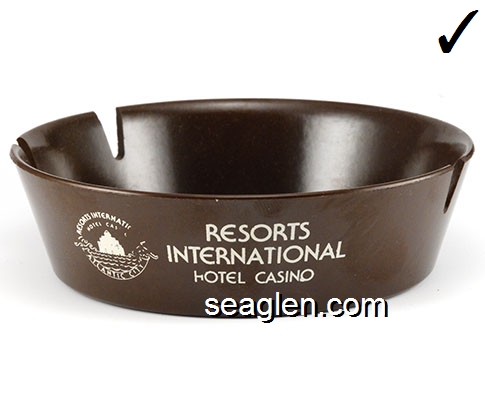 RIV-R1 Riviera Hotel Las Vegas, NV 5" Brown Bakelite Ashtray White imprint: Dino's Riviera, Las Vegas, Delmonico (Like RIV-06, except brown) |