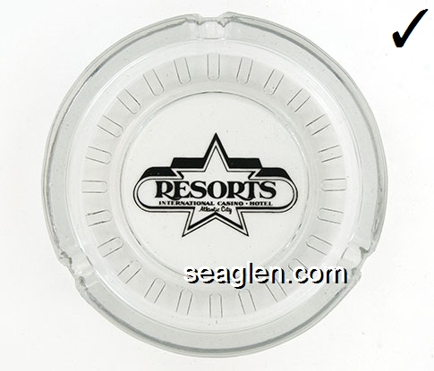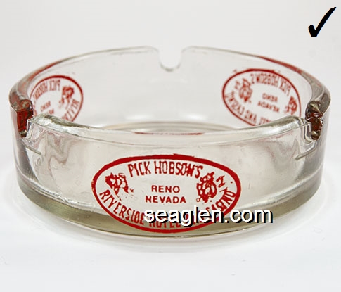RVR-G2 Riverside Resort & Casino Laughlin, NV 3 9/16" Amethyst Glass Ashtray White imprint: Riverside Resort & Casino, Laughlin, Nevada, 89046, 1000 Slots, ... Rooms, Free Ferry Service, 350 Space R.V. Park, Full Hook-Ups (Best Western logo, Like RVR-05, except with smooth bottom) |