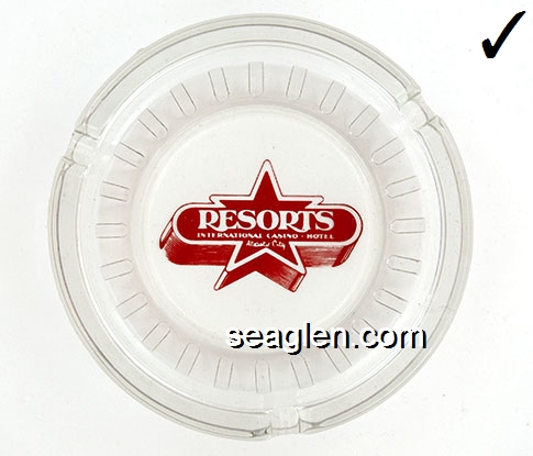 RIV-S1 Riviera Hotel Las Vegas, NV 4" Clear Glass Ashtray White on red imprint: Hotel Riviera, Las Vegas, Nevada (Design like RIV-03) |
