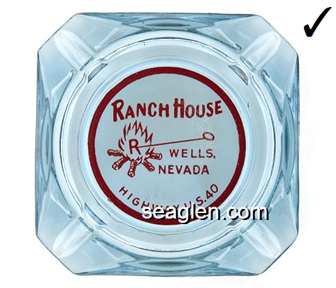 RHC-A4 Ranch House Casino Wells, NV 3 1/2" Clear Glass Ashtray Red on white imprint: Ranch House, Wells, Nevada, Highway U.S. 40 |